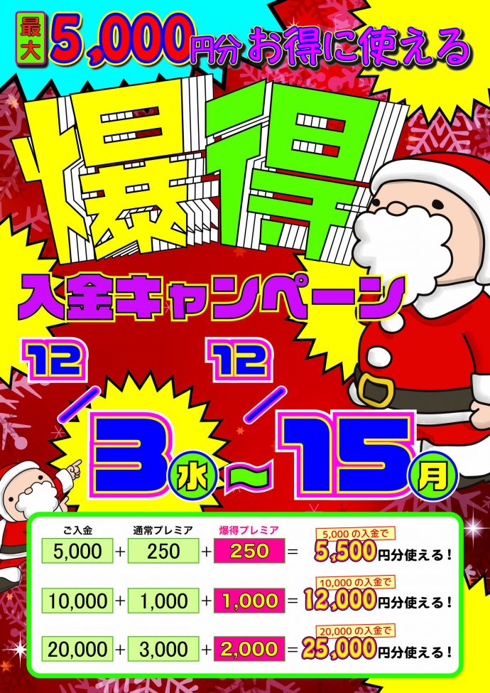 12月イベント第①弾「打ち放題割引!【全年齢対象】」【開催中】