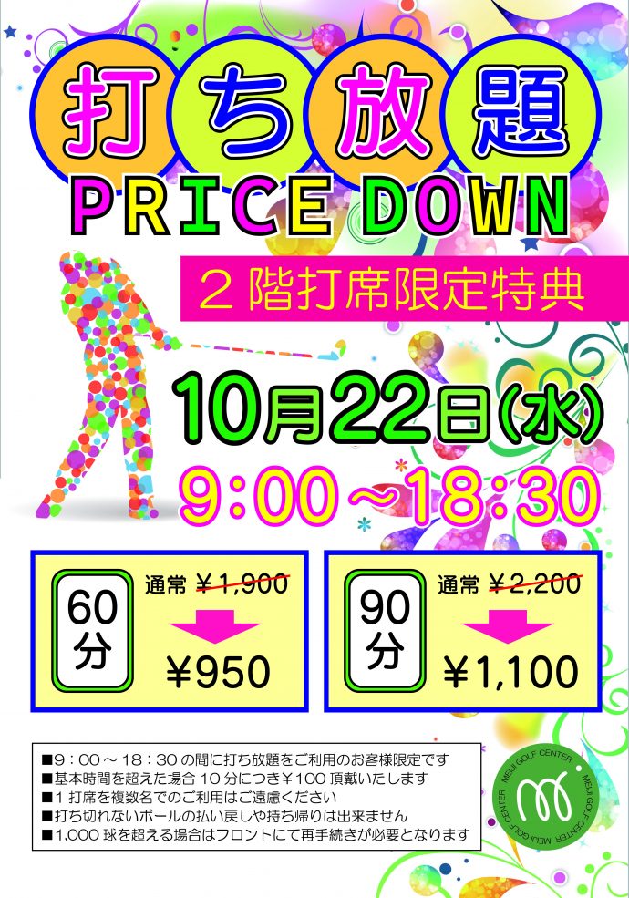 10月22日(水)は2F打席限定打ち放題がお得にご利用いただけます!