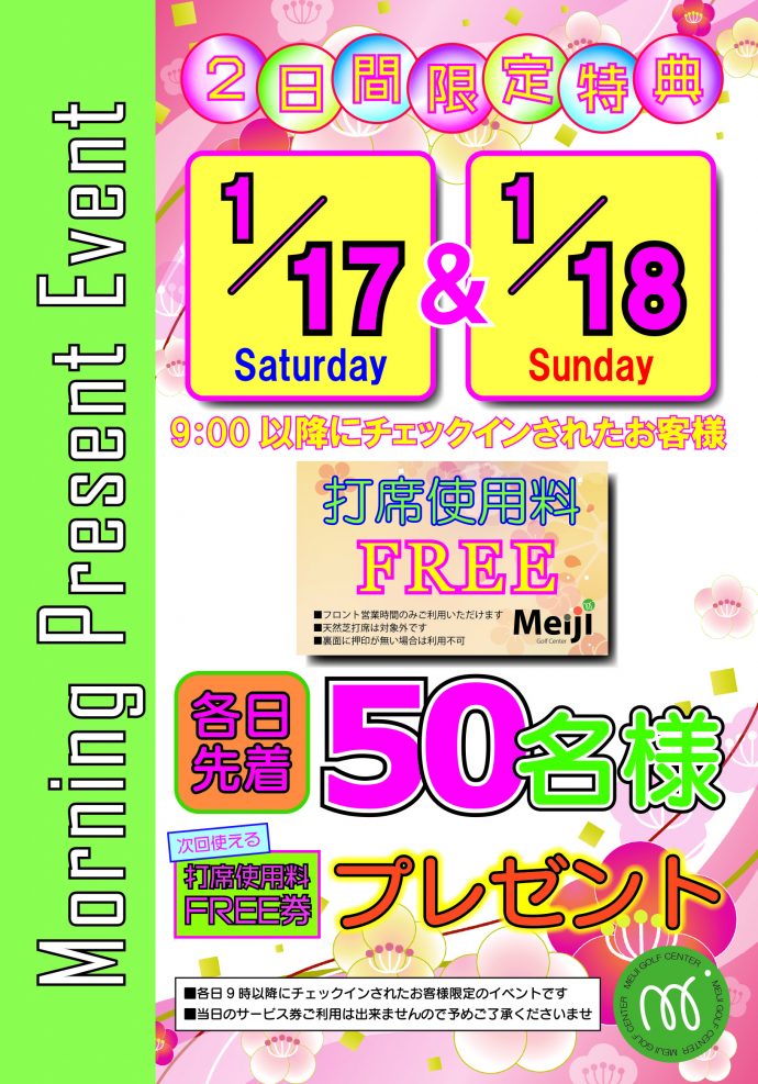 9:00~各日先着50名様、打席使用料FREE券プレゼント!