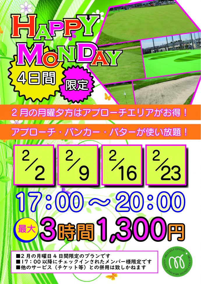 2月、月曜日の夕方はアプローチエリアがお得!