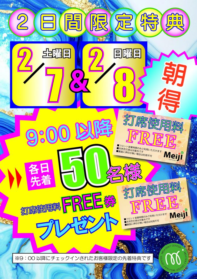 9:00~各日先着50名様、次回使える打席使用料FREE券プレゼント!